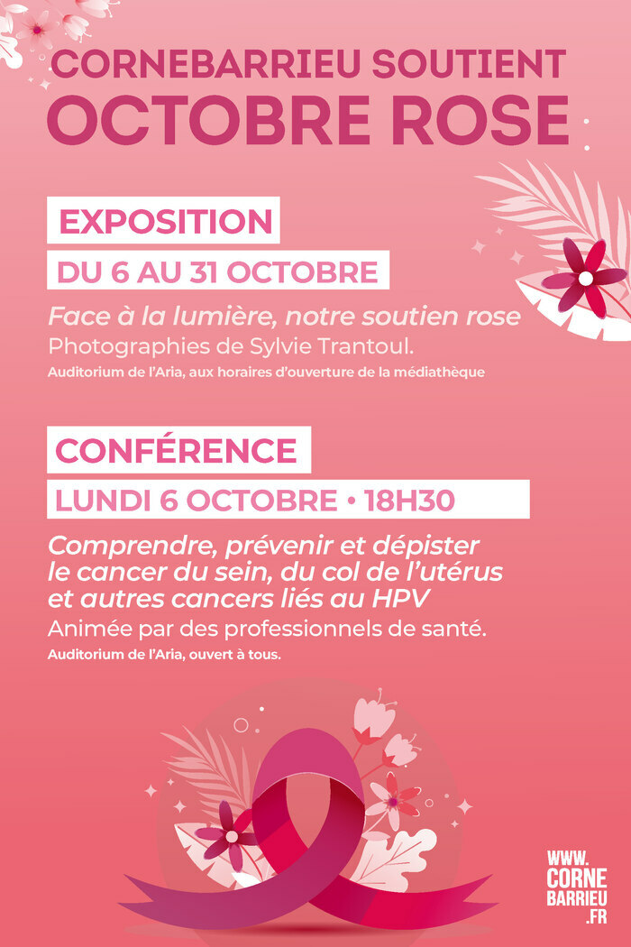 Cette année encore, la commune participe à Octobre Rose, le mois dédié à la prévention et au dépistage du cancer. Deux rendez-vous à ne pas manquer :