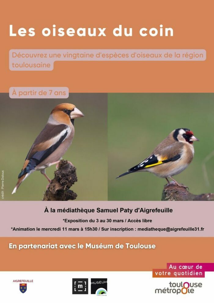 En quelques mots : Découvrez une vingtaine d'espèces d'oiseaux de la région toulousaine Description : A partir de 7 ans En partenariat avec le Muséum de Toulouse