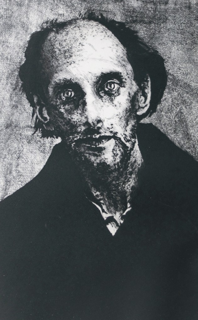 Par les biais des aléas de la gravure, il cherche à saisir les figures concrètes. Il travaille, par incisions, en taille douce et à la pointe sèche, la puissance des ombres et des regards pour témoigner de leurs intensités. Les portraits se répondent, ils évoquent tous la même histoire, le même tourment. Chacun est seul avec sa souffrance.