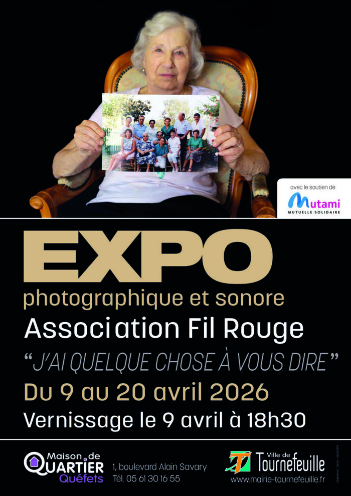 9 - 20 avrilEn quelques mots : La maison de quartier Quéfets vous convie à découvrir l'exposition photographique et sonore "J'ai quelque chose à vous dire", du 9 au 20 avril 2026, par l'association Fil rouge