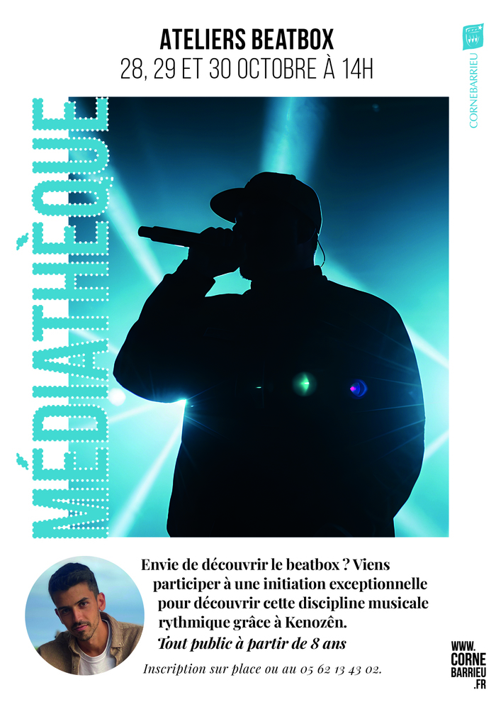 En quelques mots : De 8 à 15 ans Description : 3 ateliers d’initiation au beatbox avec le musicien Kenôzen. Les ateliers donneront lieu à une restitution avec l’artiste lors de la première partie de sa Pause Musicale#18 du 07 novembre. Les participants doivent suivre les 3 ateliers de 1h30 et être présents à la PM#18.