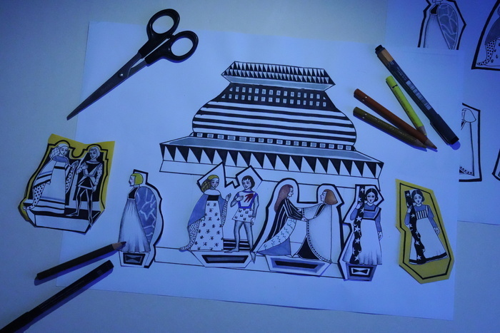 Description : Un atelier sur l'activité de décorateur de ballet d'henri-Georges adam, pour se familiariser avec le traçage des stries, entrecroisements, dents de scie, découpages, collages et comprendre son style singulier. L'objectif sera de métamorphoser un coffret médiéval à saynètes de la collection du Musée des Arts Précieux.