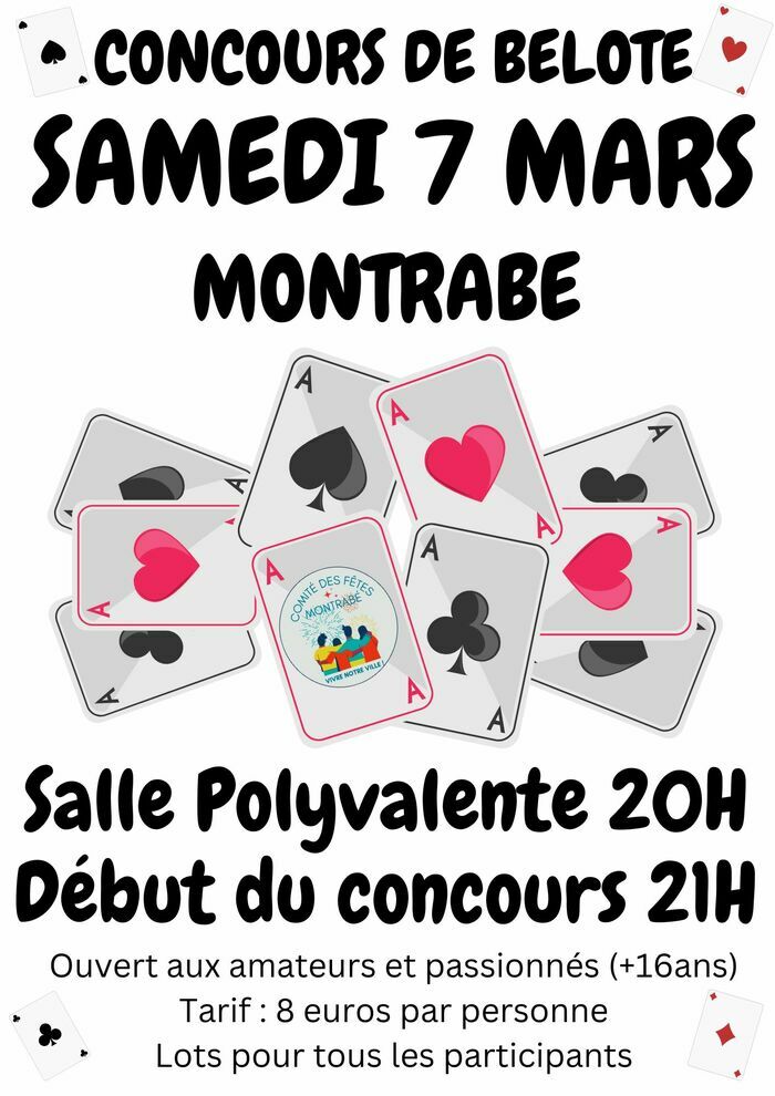 En quelques mots : organisé par le comité des fêtes de Montrabé Description : RDV à 20h pour un début de concours à 21h. Concours ouvert aux amateurs et aux passionnés de plus de 16 ans. Lots pour tous les joueurs.