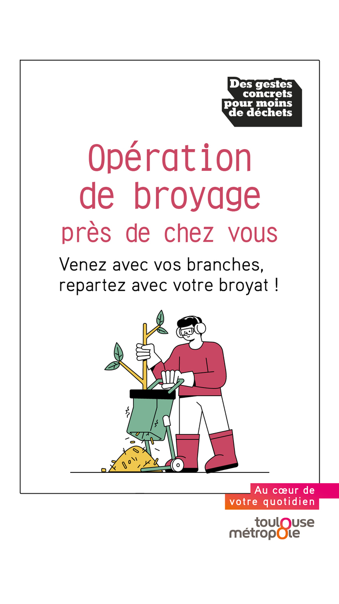 \+ d'infos sur les nouveaux services de Toulouse Métropole pour réduire vos déchets végétaux (formations, prêt de broyeur individuel, service de broyage à domicile…)