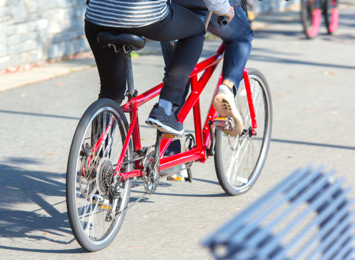 Tandem Pédalez à 2, la personne derrière aura les yeux bandés.
