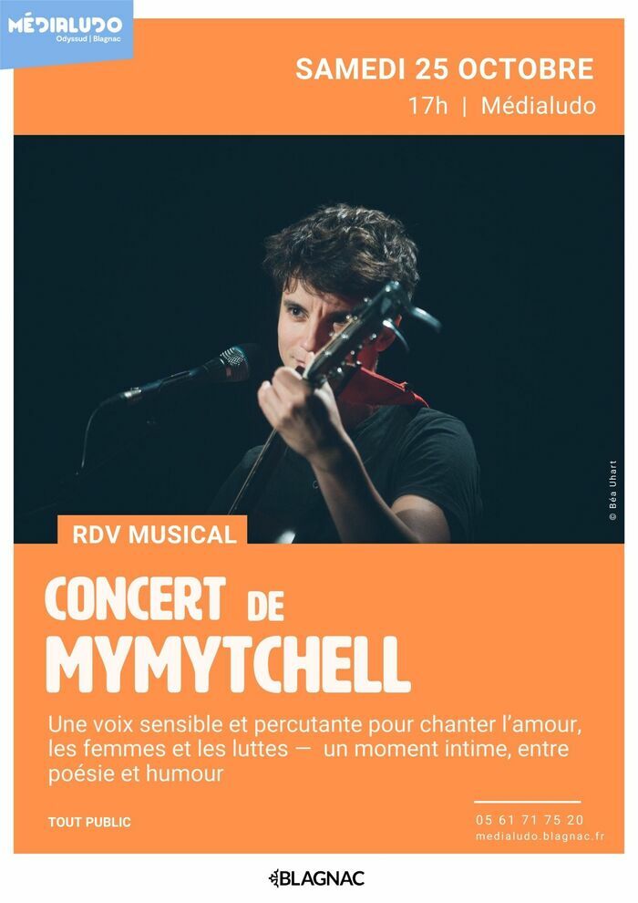 Description : Depuis son premier album Sans pause en 2016 jusqu’à Un monde enregistré en live au Bijou en 2023, Mymytchell, auteure-compositrice-interprète, trace un parcours singulier dans la région toulousaine. Sa voix grave porte des textes sur l’amour, les femmes, le pouvoir et bien d’autres sujets. Engagée, elle explore les luttes féminines avec sensibilité et force, dans un univers à la fois percutant et profondément humain. Son univers, à la fois sensible et percutant, allie émotion, énergie et humanité. En solo guitare-voix, elle nous offrira un moment musical mêlant poésie, humour et engagement.