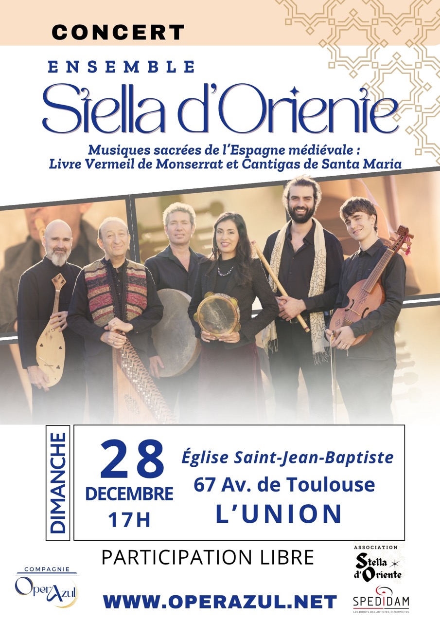 L'ensemble Stella d'Oriente propose un voyage musical exceptionnel au cœur du Moyen Âge ibérique, mettant en lumière deux joyaux du patrimoine musical européen : le Livre Vermeil de Montserrat et les Cantigas de Santa María, enrichis de chants de troubadours occitans et catalans.