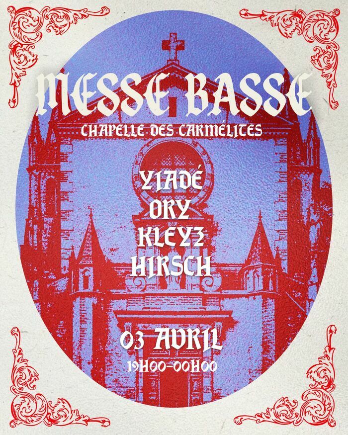 Vendredi 3 avril, 19h00En quelques mots : La "Messe Basse" est un concert immersif alliant musique électronique, créateur et performance dans un lieu unique.