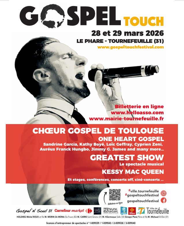 Fort de son succès grandissant et de la qualité de sa programmation, le Festival Gospel Touch est désormais devenu l’unique et incontournable événement des musiques gospel et afro-américaines du Grand Toulouse.