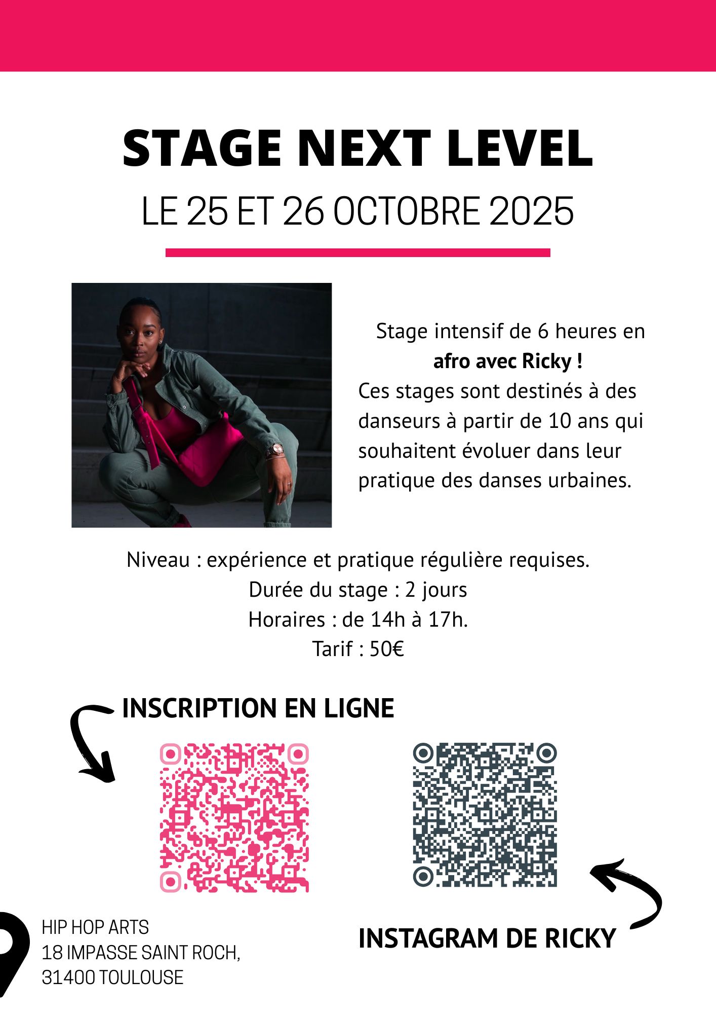 Ces stages sont destinés à des danseurs à partir de 10 ans qui souhaitent évoluer dans leur pratique des danses Hip hop. Une immersion par style de danse est proposée sur plusieurs plans :